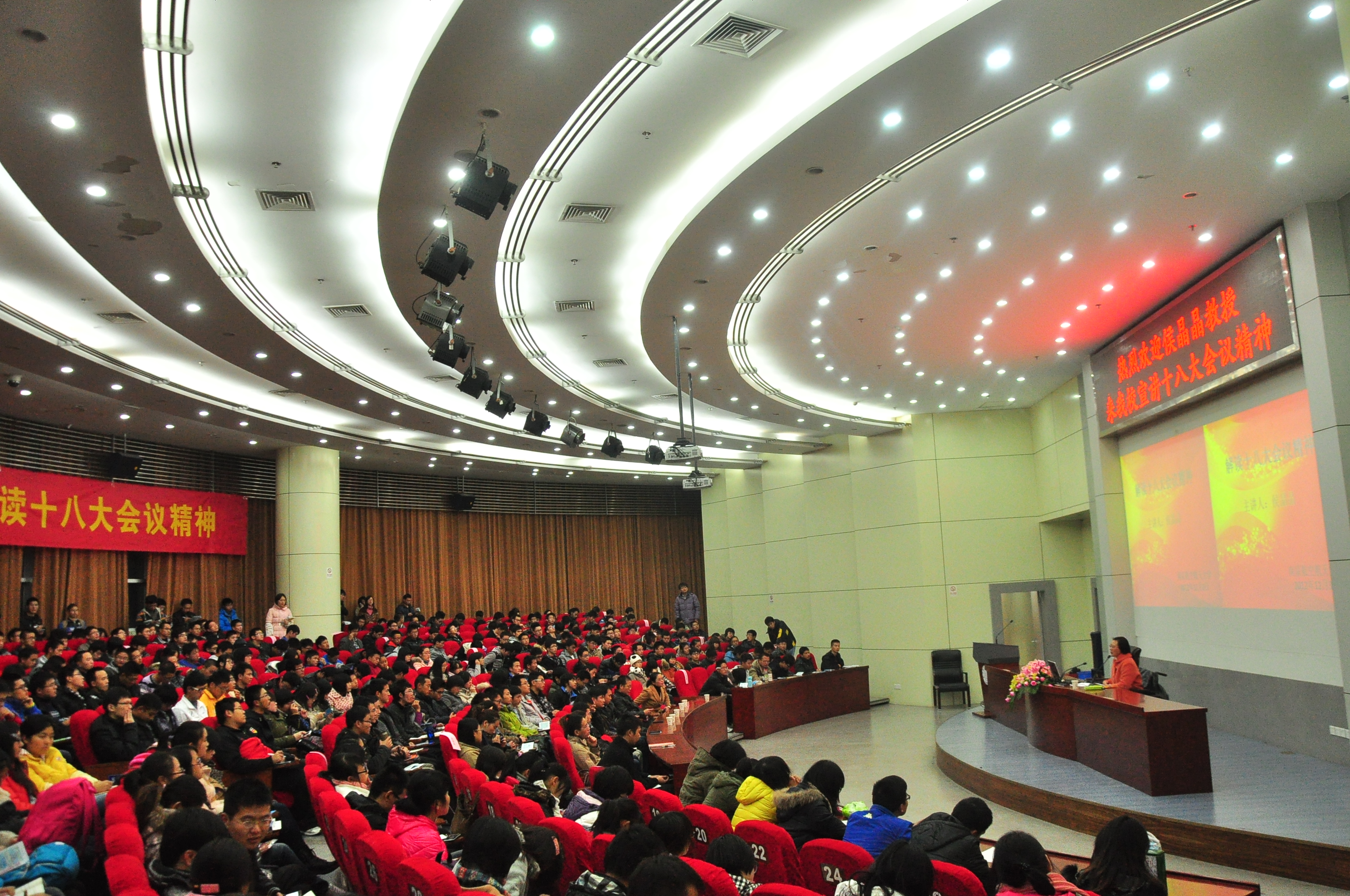 12月3日晚,南京师范大学教育科学学院副教授、硕士生导师、党的十八大代表侯晶晶在我校将军路校区做十八大精神宣讲会。此次报告会由党委宣传部、学生处主办,美高梅4688集团am承办,相关部门负责人及学生党员代表参加了此次报告会。报告会由美高梅4688集团am党委副书记庞小燕主持。