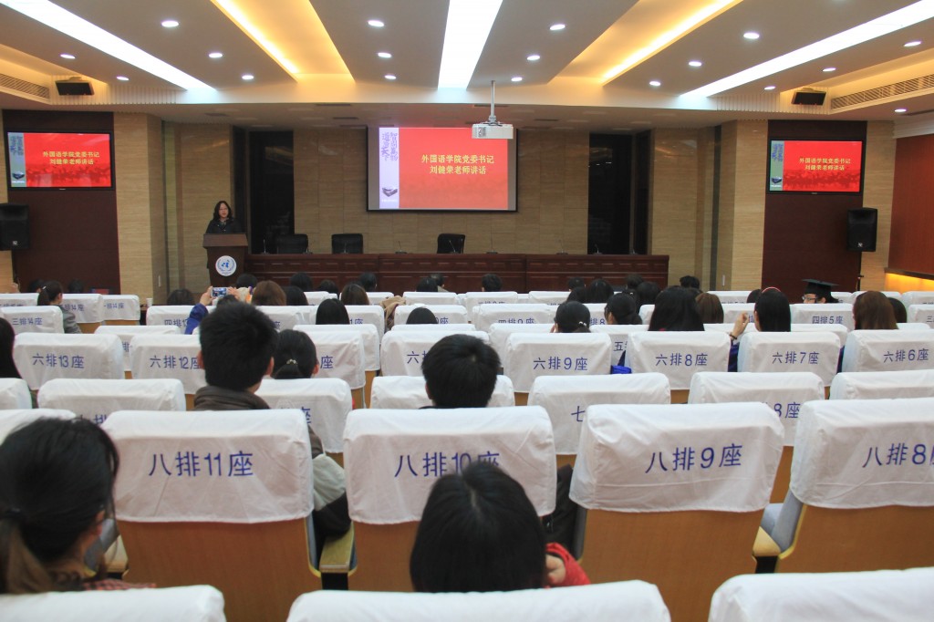 下午14点30分,毕业典礼在雄壮的国歌声中拉开序幕。典礼由刘长江副院长主持,刘健荣书记、研究生代表方颖璐、何江胜院长先后讲话。导师代表徐以中副教授则通过诺贝尔奖获得者莫言作品里的一个小故事,形象生动地向同学们讲述了谦逊、宽容以及培养独立思考能力的重要性,希望南航研究生能培养主动、积极的学习态度,努力成为未来的开拓者。领导和老师们向圆满完成学业,即将奔赴新的学习和工作岗位的各位同学表示热烈祝贺,希望同学们走上社会后,能够不断学习,全面发展,培养创造力和创新精神,同时具有实践精神,志存高远,奋发有为,并鼓励大家立足本职工作,运用自己的学识,发挥聪明才智,谱写精彩人生。