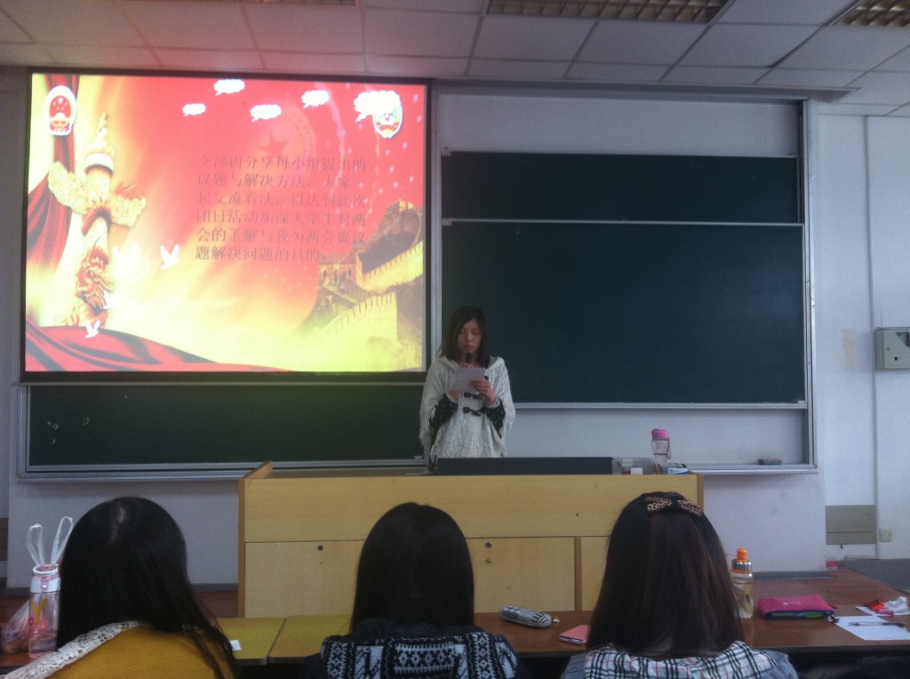 全国政协十二届一次会议和全国人大十二届一次会议于2013年3月在北京胜利召开,为深入学习“两会”精神,引导学生关心、关注国家大事,加强学生历史使命感和社会责任感,启发学生独立思考,积极实践,美高梅4688集团am11级本科生团总支采取多种形式,灵活安排时间,积极组织学生探讨“两会”内容,学习“两会”精神。