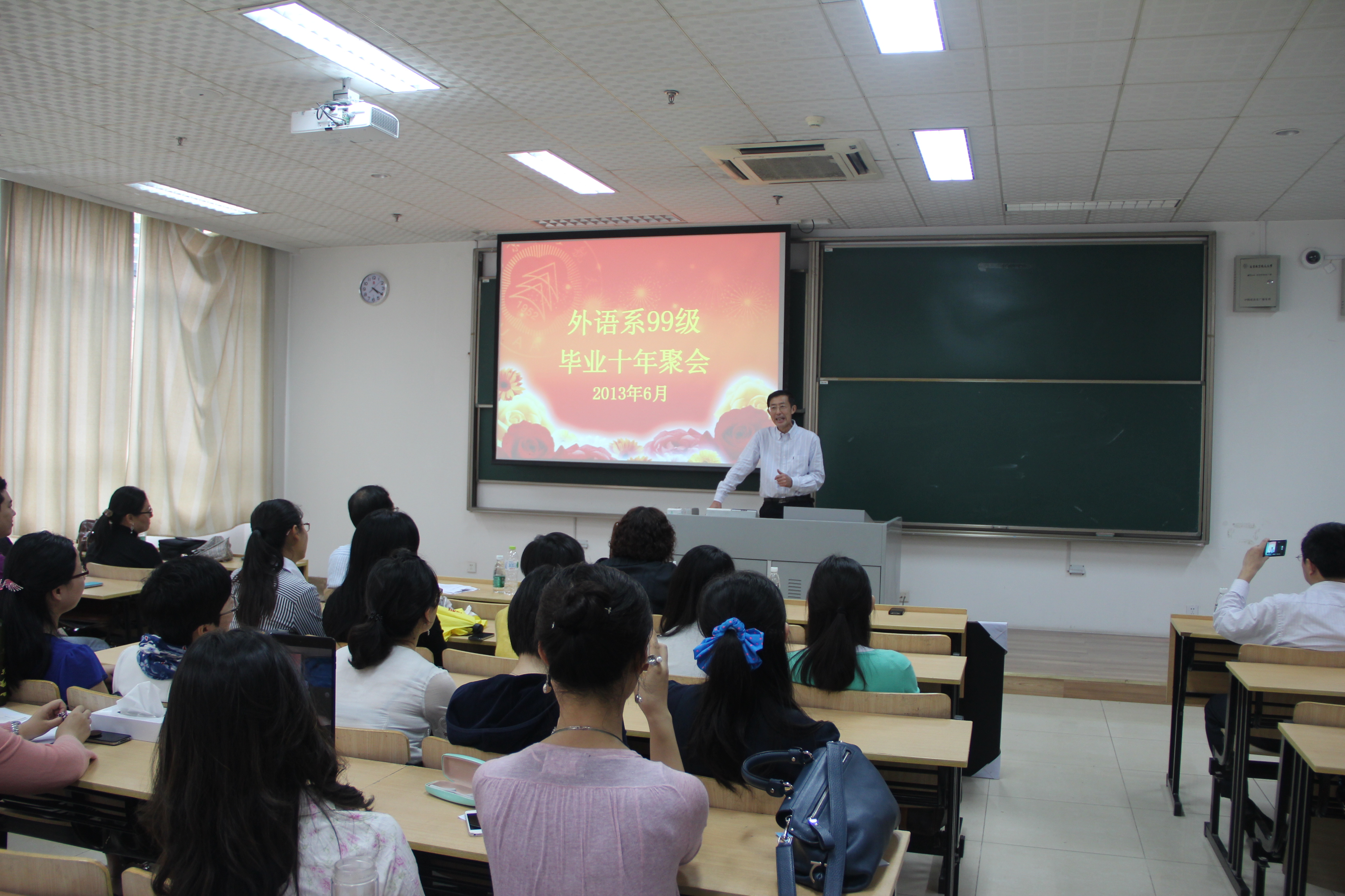 会上,随着石云龙教授的一声“Class Begins”,同学们一起起立向老师问候,仿佛回到了学生时代,重温课堂环节正式开始。何江胜院长代表学院发表了热情洋溢的致辞,他对同学们目前取得的成就表示祝贺,并介绍了学院的近况,希望同学们常回家看看。教师代表王孝存老师热情地与同学们分享了院友的涵义和友谊的意义,并教导同学们要以“外圆内方”的方式来处世和生活。各班同学代表本班同学发表返校感言,当年在母校孜孜求学的青年学子们,毕业后有的读研,有的工作,如今正奋斗在国内外的各行各业,在教育界、政府部门、国际贸易、民航运输、法律、金融等行业和领域贡献着自己独特的力量。座谈会上,校友们纷纷表示,大学4年的时光非常美好和令人怀念,在母校收获的知识和增长的能力为职业发展和今后的生活打下了坚实的基础。