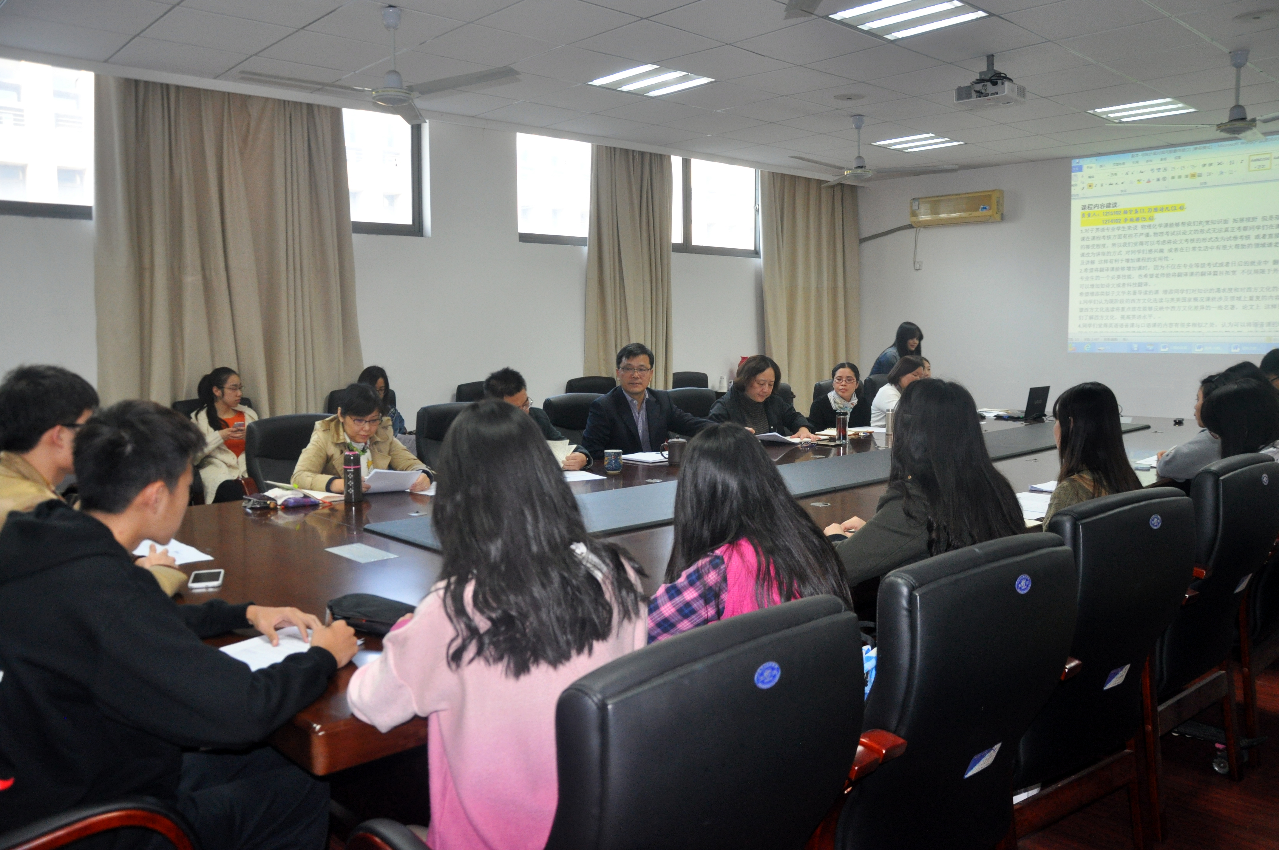 经过前期广泛的意见征集与整理,学生代表们围绕师生共同关注的课程设置、课堂教学、专业分流、本科生导师制、实习实践安排、国际化发展等话题踊跃发言,分享了现状调查结果和同学们的意见、建议。在课程设置上,英语专业学生代表提出了部分课程内容上略有重复,日语专业学生建议低年级的专业课程应有所增加;在课堂教学上,有同学建议部分老师的课堂安排更加合理,课程考核方法需提前明确等问题;对于学院即将实施的本科生导师制,学生代表们在导师的选择方法、考核方式等方面提出了具体建议;在国际化发展上,同学们期待学院多争取适合美高梅4688集团am学生的交换项目,更加支持模拟联合国大会等国际性活动,并有机会开展与留学生的交流活动;大四学生代表也积极提出希望得到学院更加合理地安排课程时间以利于学生进行有针对性的、高质量的实习等建议。