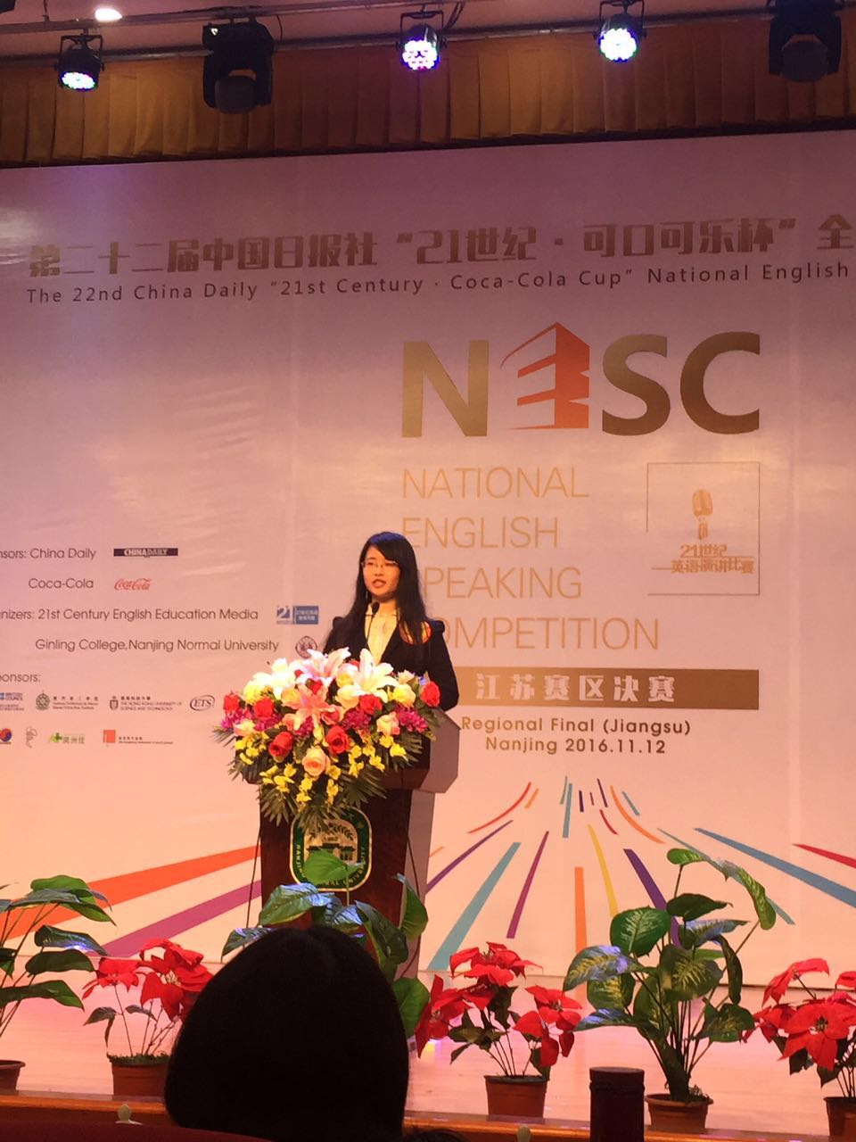 喜报——美高梅4688集团am学生在2016年“21世纪杯”全国英语演讲大赛江苏赛区决赛中摘得大赛一等奖