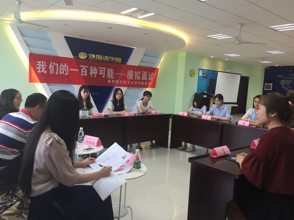 2017年6月16日,在学院楼504教室,学院面向2018届准毕业班学生举办了“我们的一百种可能”模拟面试活动。活动有幸邀请到江苏舜天有限公司人力资源经理刘佳琦、江苏省舜禹信息技术有限公司公司人力资源经理唐丽杰以及我校就业创业指导服务中心柯伊担任评委,对同学们进行面试指导。