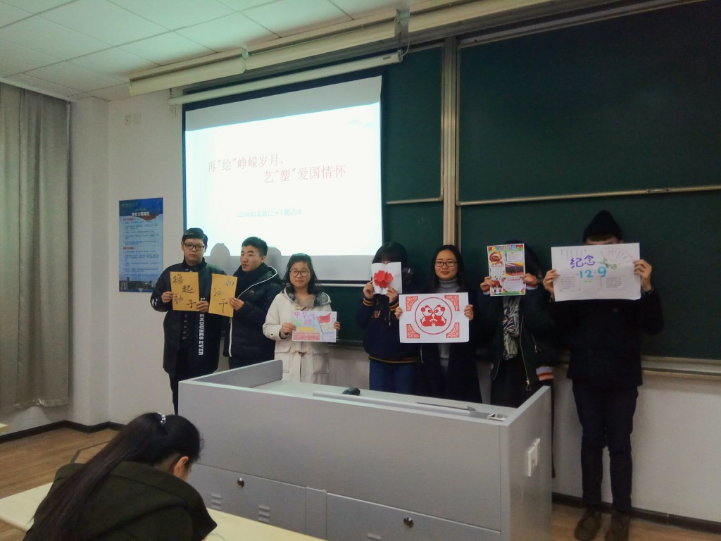 80年前的中国积贫积弱,手无寸铁的青年学生凭着满腔热血呼喊抗日救亡的口号,唤醒了全民族抗战的斗志和血性。为了铭记“一二九”爱国主义运动,激发学生的历史使命感和社会责任感,激昂斗志,培养学生的爱国情怀,美高梅4688集团am2015级以团支部为单位举办了一系列的“一二九”爱国主题教育活动。