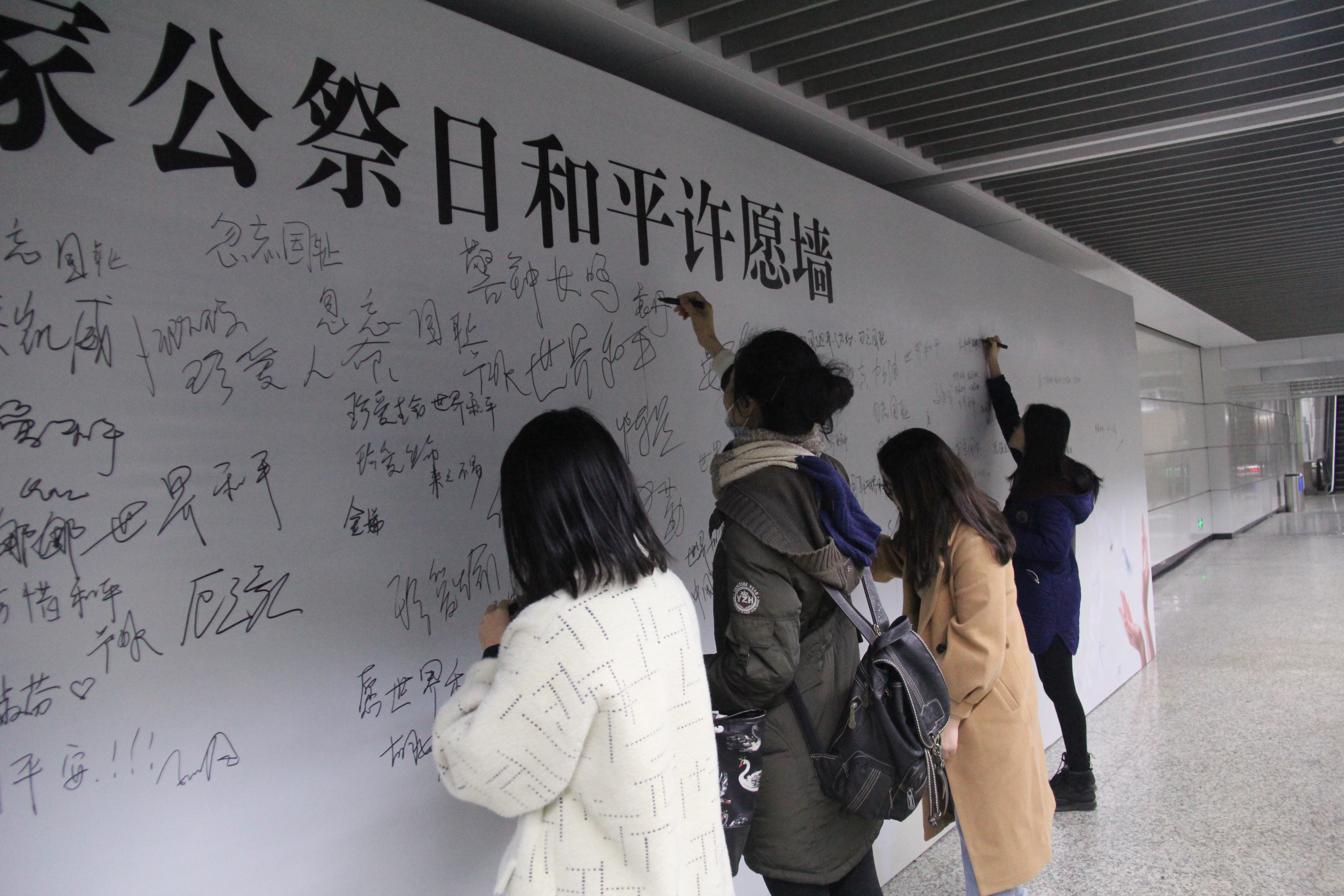 12 12月5日,美高梅4688集团am学生党支部的12位党员同学前往南京南站,参加南京大屠杀死难者国家公祭⽇“和平许愿墙”活动,悼念同胞,铭记历史,祈愿和平。 由市委宣传部等单位指导、东方卫报社主办的南京大屠杀死难者国家公祭⽇活动,在南京南站7号口的通道两侧,设立了两面“和平心愿地图”与“和平许愿墙”。来往的民众纷纷驻足,在地图上家乡位置进行许愿签名,并将家乡所在地与南京连线,寓意各地人民共同祈求和平,祝福中国。在另一侧60平方米大小的许愿墙上,写满了民众对于战争的谴责和强国的梦想,字里行间流露出的是对南京大屠杀遇难同胞的沉痛悼念与对未来的美好希冀。 美高梅4688集团am的党员同学们也执笔在许愿墙上写下寄语,一字一划都是他们对于历史的深刻感悟。之后,同学们通过现场的手机线上活动,为遇难同胞点烛祭奠,献花寄托哀思。活动结束后,同学们深有感触:中华儿女,血脉相连,休戚与共。要将今天的忧患意识将变成明天的自强不息,日后担负起祖国的未来,再不让历史的悲剧重演。 本次党日活动让同学们直面历史、触摸历史,进⼀步弘扬了以爱国主义为核心的民族精神教育,营造了牢记历史、不忘过去、珍爱和平、开创未来的良好氛围,更令同学们时时警醒,将党员精神铭记在心,从自身做起,从当下做起,不忘初心、积极进取,在学习与生活中以实际行动为党旗增光添彩,为中华民族之崛起贡献力量。学生工作