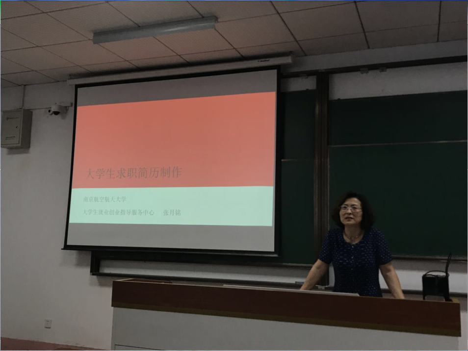 6月19日下午,美高梅4688集团am特邀南航大学生就业创业指导服务中心、就业市场部主管张月铭老师为大三学生开展“简历制作探索培训”主题讲座,美高梅4688集团am本科生辅导员刘凡玉及2016级全体“准毕业生”到场学习聆听。