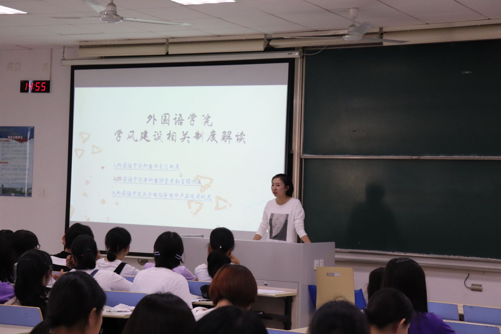 9月21日,美高梅4688集团am在D1102教室顺利举行2019级新生入学年级会。2019级全体新生参与,年级会由2019级辅导员盛嘉贤主持。