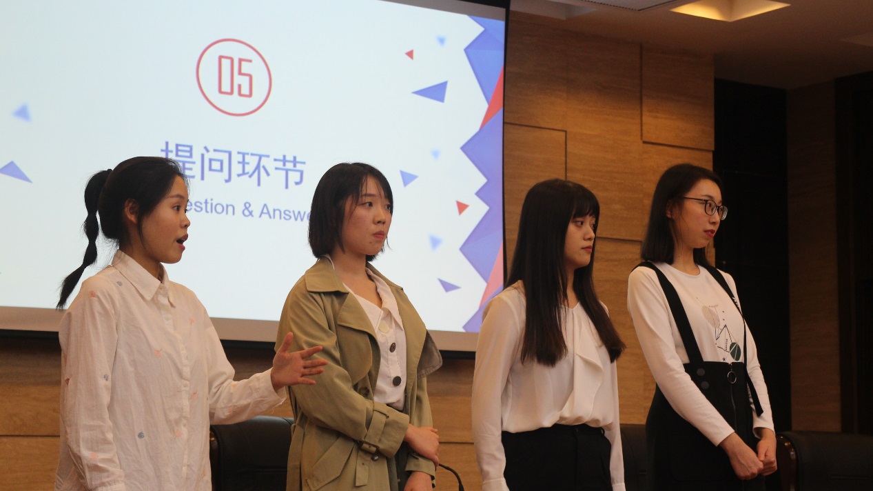 接着,往届参赛代表赵天朗介绍了他与模联的缘分以及如何从一名大一新生走进模联的历程;朱一娴介绍了自己从准备到参赛一路走来的心路历程,并现场讲解了立场文件的写作技巧;王欣彤分享了选拔过程经历、培训内容和对个人的能力素质要求;王姝具体介绍了纽约模联和联合国会议的异同;董云炜分享了纽约模联的现场和比赛过程。