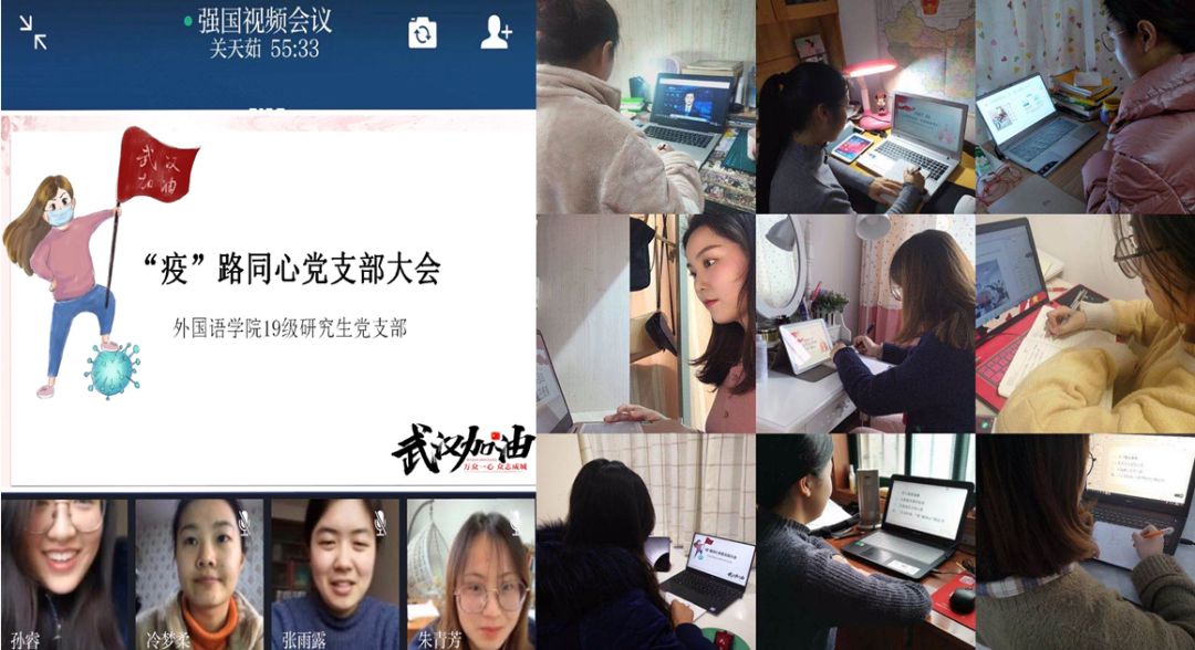 美高梅4688集团am研究生各党支部,充分运用网络新媒体阵地,创新组织生活“线上”模式,在特殊时期在线上开展各研究生党支部党员大会,通过“云端”开展理论学习、党员与群众联系工作,在论文进度、求职签约、毕业答辩、日常打卡等方面开展定点沟通帮扶,充分发挥党支部战斗堡垒作用和党员先锋模范作用。下面就让我们一起去了解他们在疫情期间的行动吧。