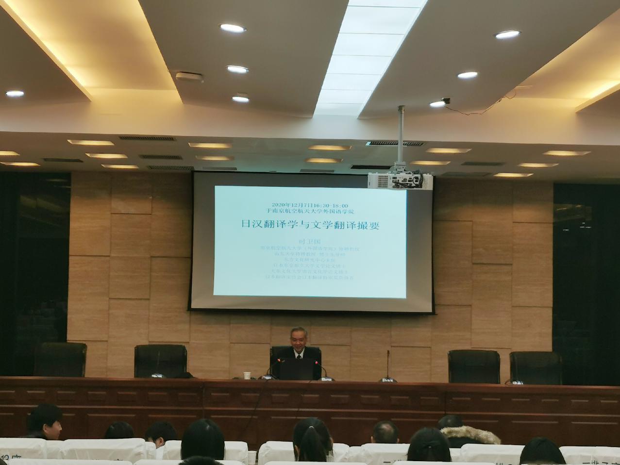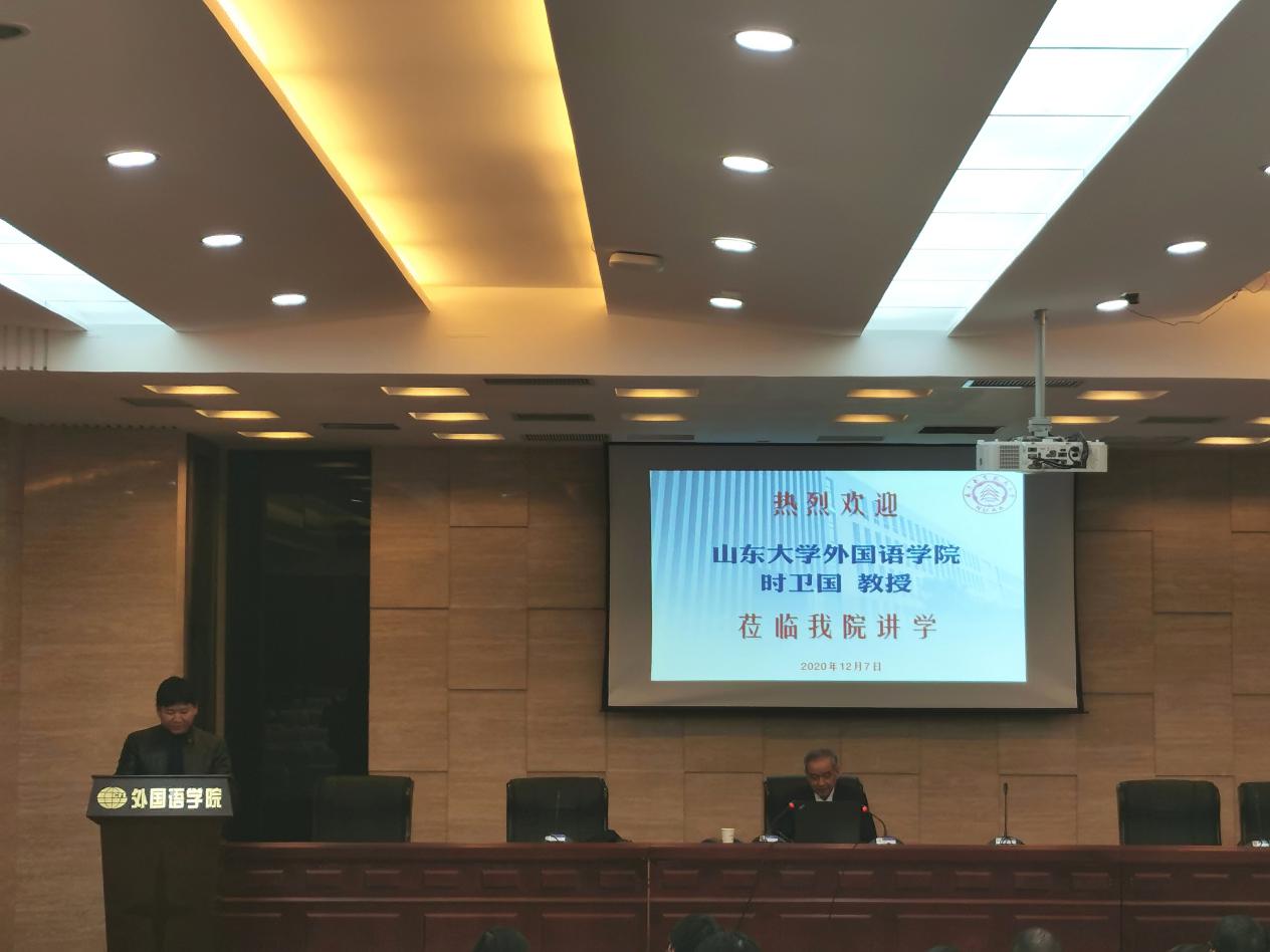 12月7日下午,应美高梅4688集团am邀请,山东大学美高梅4688集团am兼人文社科青岛研究院特聘教授时卫国教授在国际会议中心举办了题为“日汉翻译学与文学翻译撮要”的学术讲座。美高梅4688集团am日语系主任窦硕华老师主持了本次讲座,日语系师生和部分英语专业学生参与了聆听。