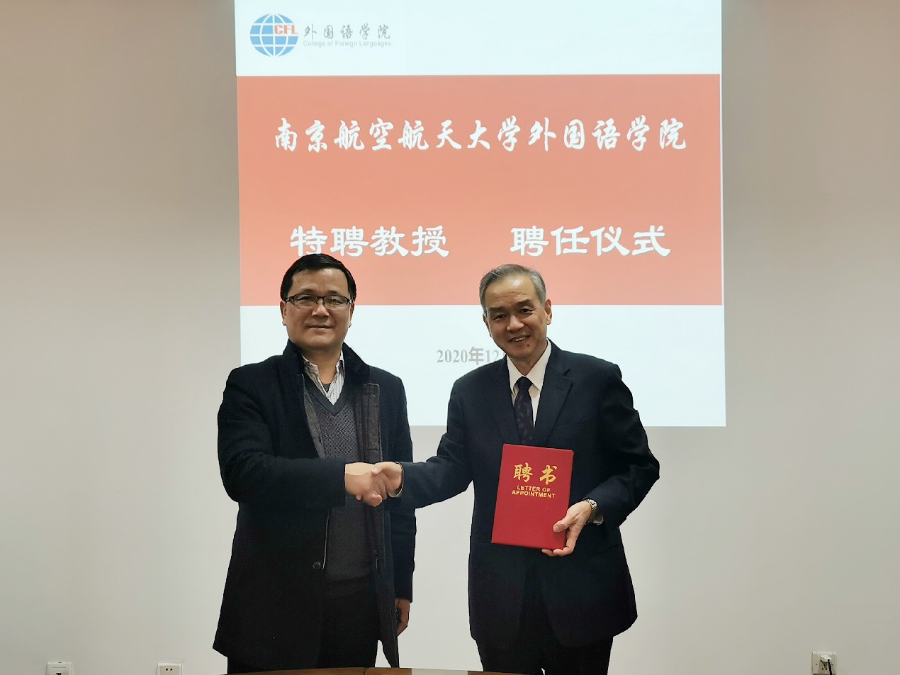 时教授在过去几年间曾三次莅临美高梅4688集团am,与日语系教师结下了深情厚谊,时刻关心南航日语专业的发展。经学院协商,决定聘任时卫国老师为美高梅4688集团am特聘教授,7日下午讲座前,院长范祥涛教授亲自颁发“特聘教授”聘书。时卫国教授表示,今后将尽自己所能,支持南航日语专业发展的发展,并为南航高水平国际化人才的培养贡献力量。