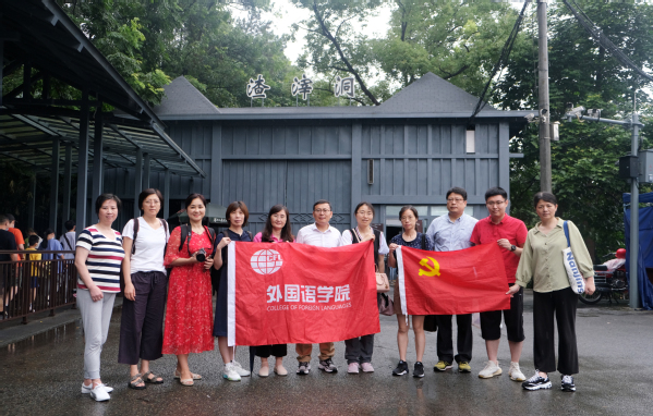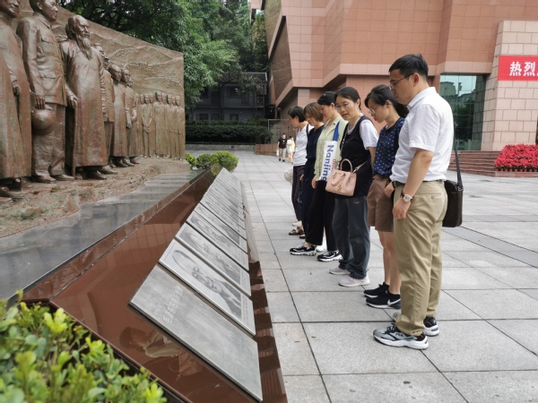 为巩固党史学习教育成效,将党史学习推向深入,加深对党的精神谱系的学习研究,7月14日,美高梅4688集团am党委联合院“外语教学与立德树人研究中心”组织部分党员教师、入党积极分子赴重庆革命教育基地,开展“追忆红岩精神,坚守初心使命”主题教育活动。学院副院长姜礼福带队进行。