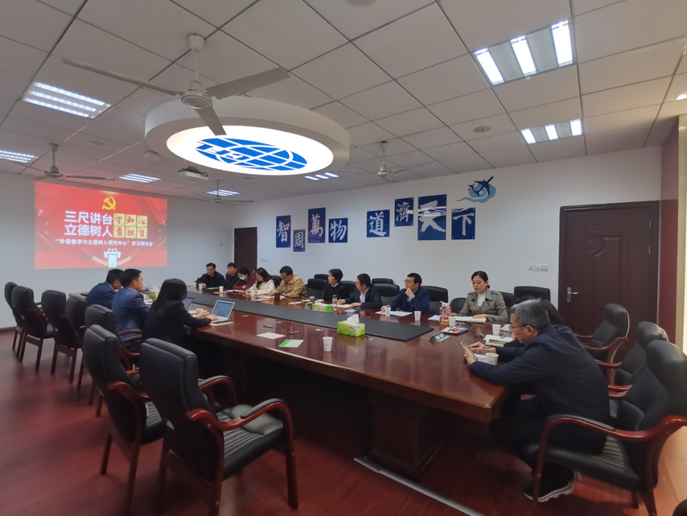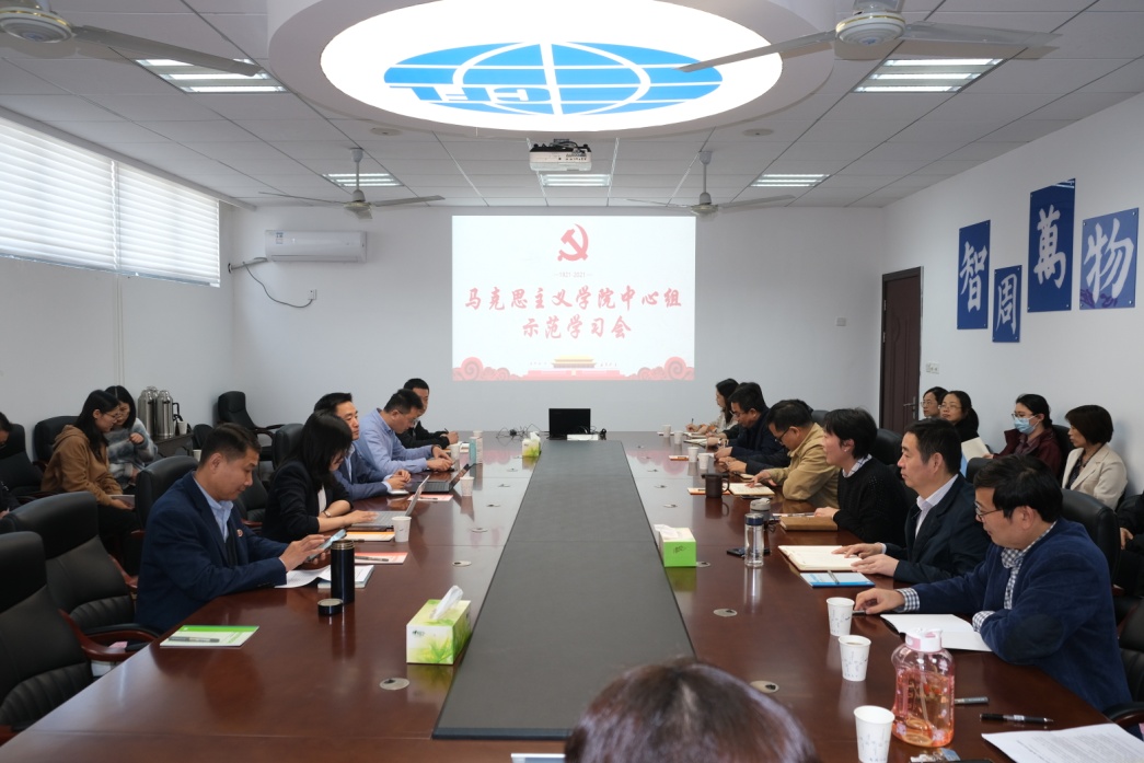 为深入学习习近平总书记“七一”重要讲话精神,落实学校《2021年下半年校院两级党委理论学习中心组补充计划》要求,10月18日下午,美高梅4688集团am联合材料科学与技术学院、计算机科学与技术学院/人工智能学院以及将军路校区管委会开展马克思主义学院中心组示范学习会暨“外语教学与立德树人研究中心”学习研讨会。出席会议的有马克思主义学院院长王智,副院长陈红桂、何畏和教授徐军等。美高梅4688集团am党委书记左彤云,院长范祥涛,党委副书记梁薇,副院长徐以中、姜礼福以及部分教师代表。材料科学与技术学院党委书记石勇、计算机科学与技术学院/人工智能学院党委书记刘健荣、将军路校区管委会党工委书记邬沛雄、主任刘兼唐,副主任周聚等同志志参加了观摩学习。左彤云代表参会学院对马克思主义学院的领导专家送学上门表示了欢迎和感谢。中心组学习会由陈红桂主持。