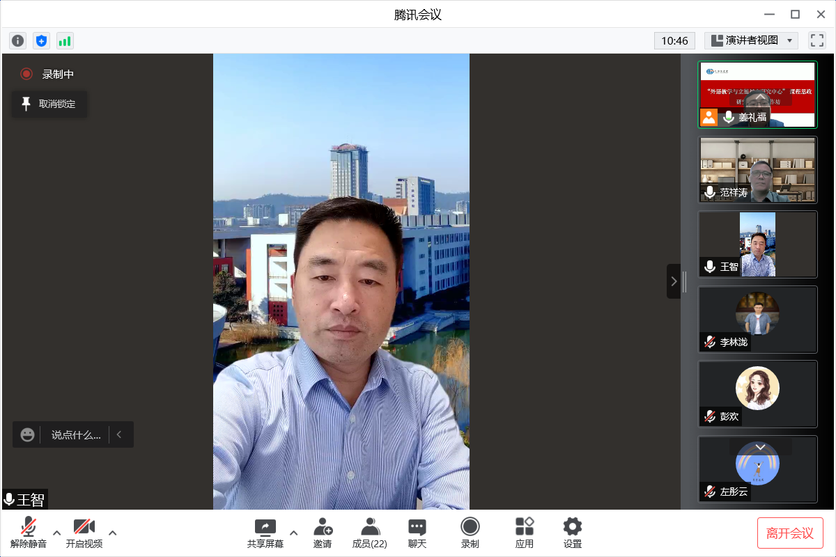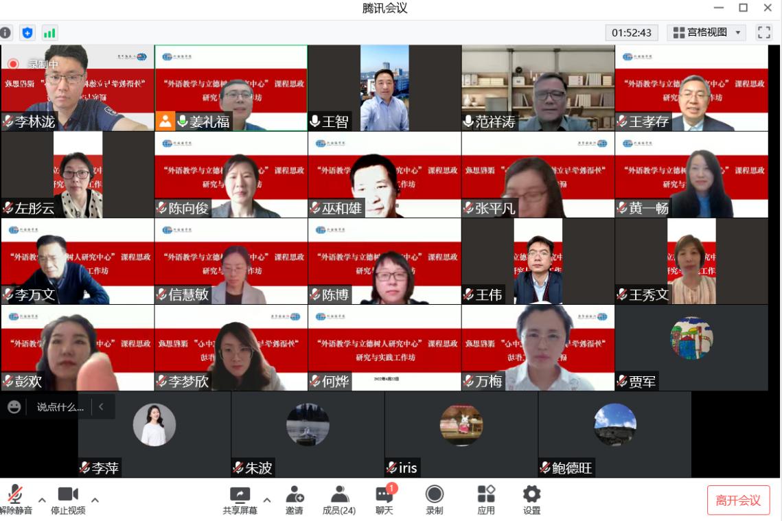 为推动课程思政的实践探索,落实立德树人根本任务,提升育人效果,4月22日,美高梅4688集团am举办“外语教学与立德树人研究中心” 课程思政研究与实践工作坊。应疫情防控要求,会议在线举行。本次会议特别邀请了马克思主义学院院长王智担任评审,美高梅4688集团am党委书记左彤云、院长范祥涛,副院长姜礼福以及参与立项的全体教师出席了会议。会议由姜礼福主持。