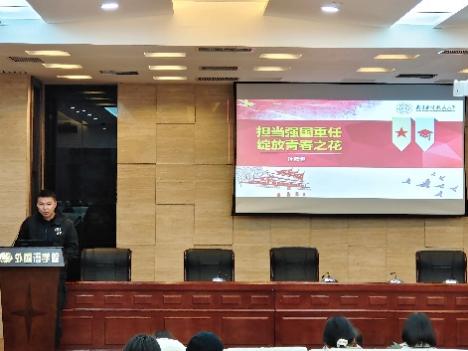 孙彦博以“担当强国重任,绽放青春之花”为题分享了他的军旅经历,向同学们介绍了他新兵训练期间的不易与艰辛,同时也向同学们介绍了我校“航空报国”的红色基因和“志在长空”的蓝色梦想,指出当代青年应该担当强国重任,绽放青春之花。
