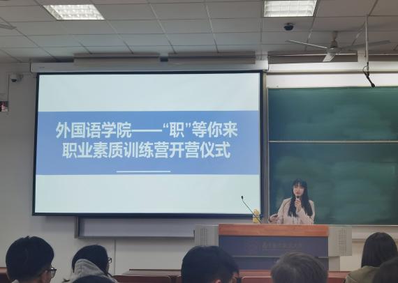 为引导学生提前了解就业、升学形势,充分利用大三学年明确目标航向,3月10日美高梅4688集团am举办了“职”等你来——职业素质训练营开营仪式。仪式由辅导员赵瑜瑶主持,2020级全体本科生参加。