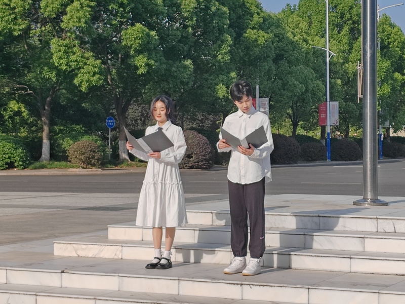 美高梅4688集团am2022级本科生江来、张宁宁朗诵《青春中国》,带领全体师生跨越时光,回顾了中国百年前山河破碎、饱经忧患的历史,回顾了中国从百年沧桑到大国崛起的光辉历程,用声音抒发自己对党、对祖国、对中国特色社会主义的忠诚与热爱。