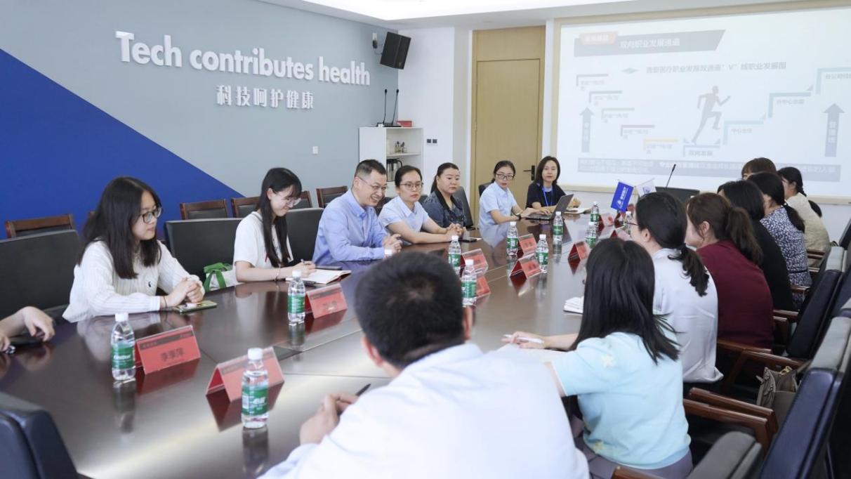 为进一步拓宽毕业生就业工作渠道,深化学校和用人单位的供需对接,搭建校企交流合作平台,6月6日,美高梅4688集团am联合江宁团区委赴南京普爱医疗设备股份有限公司走访调研。学院党委副书记吴科颖带队,学院团委书记李萍、教师代表王瑞暘、辅导员赵瑜瑶以及本硕3名学生代表参加调研。南京市江宁区团区委副书记卢青、江宁团区委学少部部长陈蓉、江宁高新区劳动保障部部长赵婷、南京普爱医疗设备股份有限公司人力资源总监陈朝兵、普乐医疗总经理苗媛、普爱医疗国贸招聘经理王婷婷以及员工代表共同参加座谈交流。