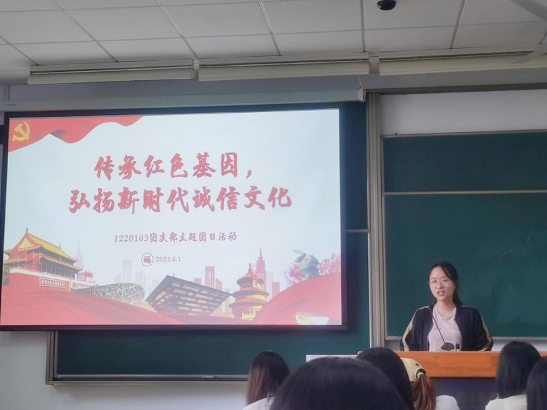 2023年6月1日,美高梅4688集团am1220103团支部在东区教学楼D3201教室开展“传承红色基因,弘扬新时代诚信文化”主题团日活动。结合我校党员领导干部深入基层联系学生的工作机制,此次团日活动邀请美高梅4688集团am党委副书记吴科颖参加。