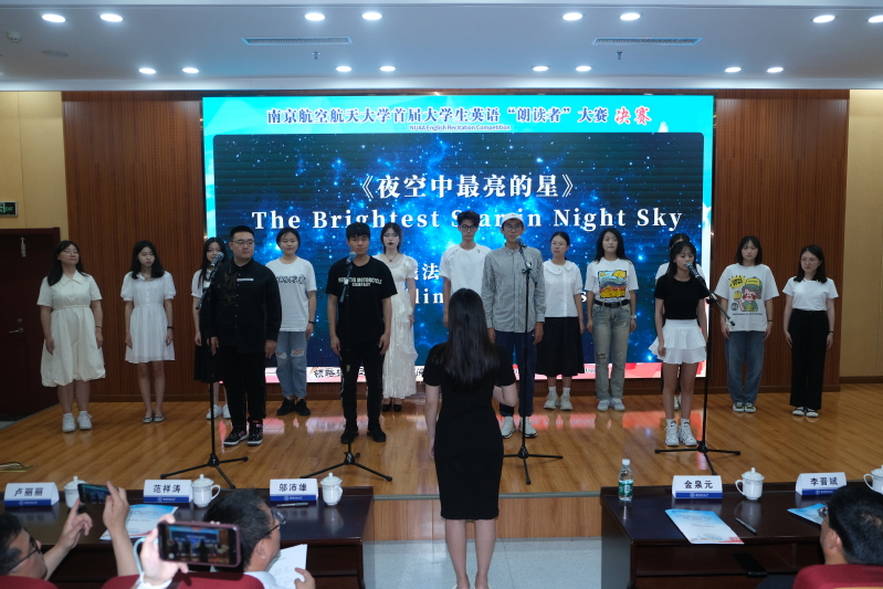 为进一步提高我校大学生英语口语表达能力和朗读技巧,增强学生用英语讲好中国故事的能力,拓宽学生国际视野,为我校培养具有中国情怀、国际视野和跨文化沟通能力的人才,6月14日美高梅4688集团am首届大学生英语“朗读者”大赛决赛在南航将军路校区图书馆一楼报告厅顺利举办。本次大赛由我校教务处主办,学生处以及校团委协办,美高梅4688集团am和图书馆联合承办。将军路校区党工委书记邬沛雄、国际教育学院院长金泉元、美高梅4688集团am院长范祥涛、教务处副处长李晋斌、教师发展与教学评估中心副主任卢丽丽、艺术学院副院长朱琰、长空学院副院长彭聪、学生处处长助理魏东博、校团委副书记惠成钢、丹麦籍外教Thomas Schumann、美国籍外教Geoffray Bogan、美国籍外教Jackie Coon等出席决赛并担任评委。此外,大赛邀请到了图书馆党总支书记周克印、美高梅4688集团am党委书记左彤云、图书馆副馆长沈伯秀、党委宣传部副部长李秀龙、美高梅4688集团am副院长徐以中及美高梅4688集团am党委副书记吴科颖担任嘉宾。