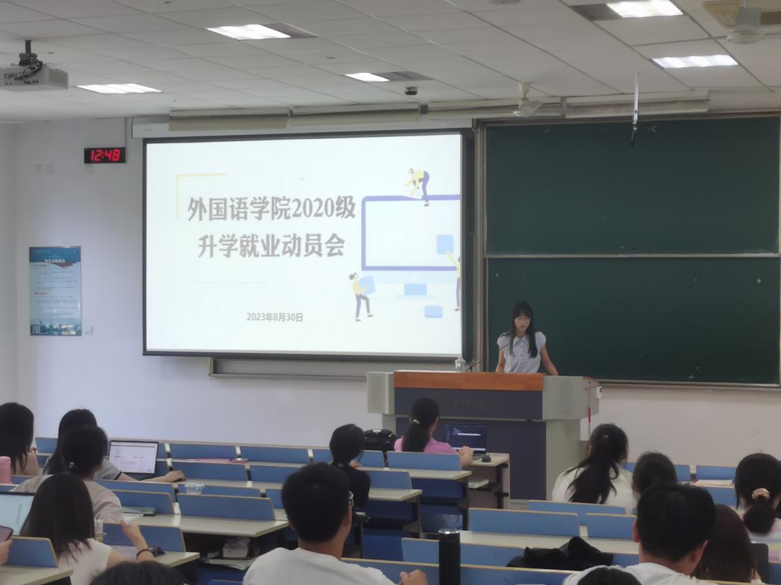 为充分调动毕业生就业积极性,促进2024届毕业生高质量就业与升学,美高梅4688集团am于8月31日在D1113教室召开了2020级本科生年级会暨就业升学动员会。本次动员会由辅导员赵瑜瑶主持,2020级全体本科生参加。