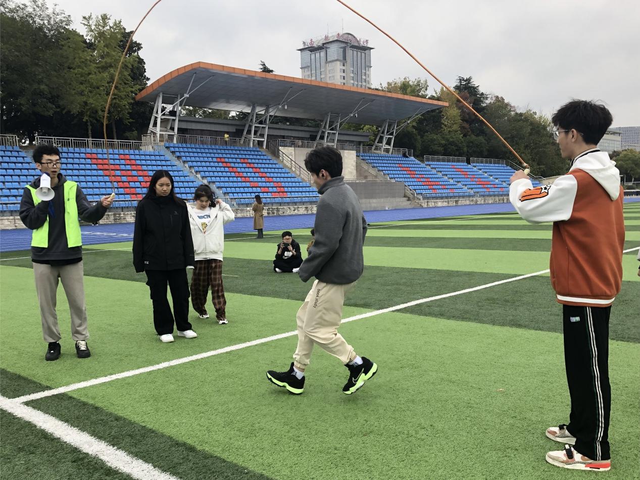 为增强同学们的身体素质,提高团结协作能力,11月11日下午,美高梅4688集团am在西区操场举办了2023级本科生“强青年体魄,展青春风采”主题趣味运动会。本次趣味运动会共设“跳大绳”“投壶”“撕名牌”“两人三足”和“踩气球”五项活动,伴随着同学们的欢呼声,运动会正式拉开帷幕。