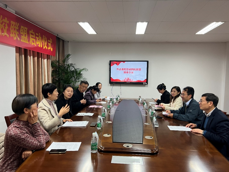 报告会后,召开了外语课程思政联盟圆桌会议,各单位围绕课程思政工作现状及工作思路展开了经验分享及工作研讨。