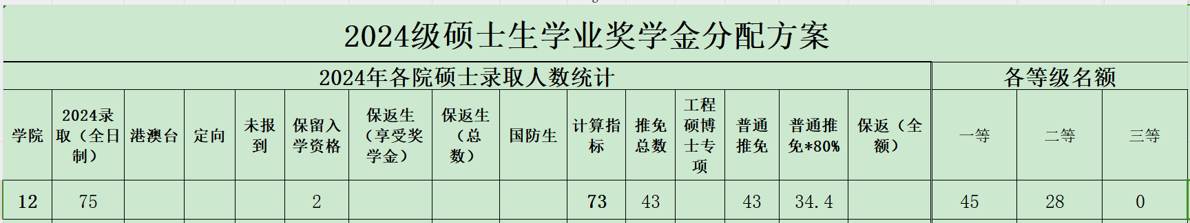 2.统考考生,各学科方向、各等级奖学金名额分配,根据固定公式进行计算,计算结果四舍五入;