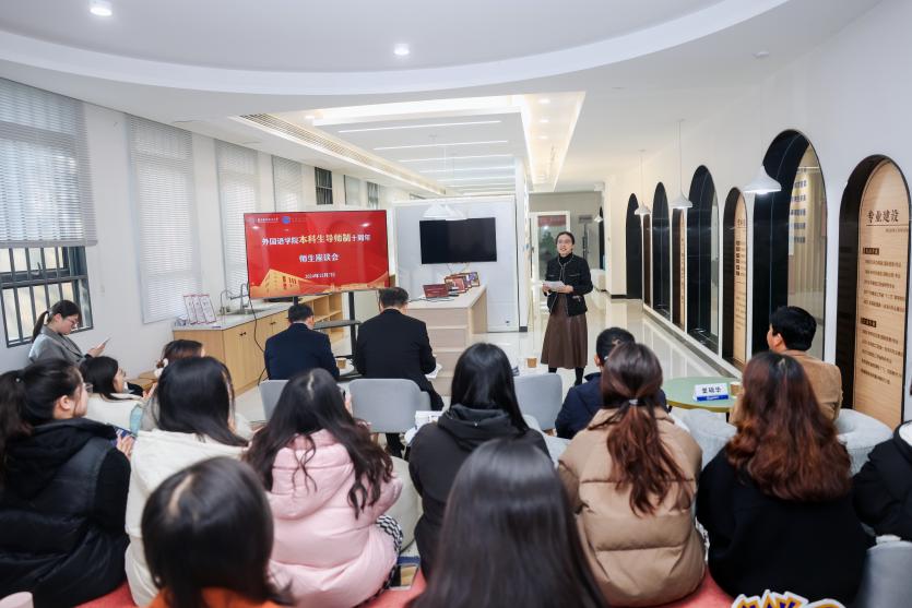 12月7日上午,美高梅4688集团am举办“本科生导师制”十周年师生座谈会。美高梅4688集团am本科生联合党支部联系校领导张启钱,美高梅4688集团am党委书记左彤云、院长徐以中、党委副书记吴科颖、副院长姜礼福出席会议;英语系教师信慧敏、曹璐、胡玉明,日语系教师窦硕华、宋歌,本科生联合党支部全体党员,学风建设本科生“学业攀登计划”“学海同舟计划”获奖学生代表和班级代表参加会议。座谈会由吴科颖主持。