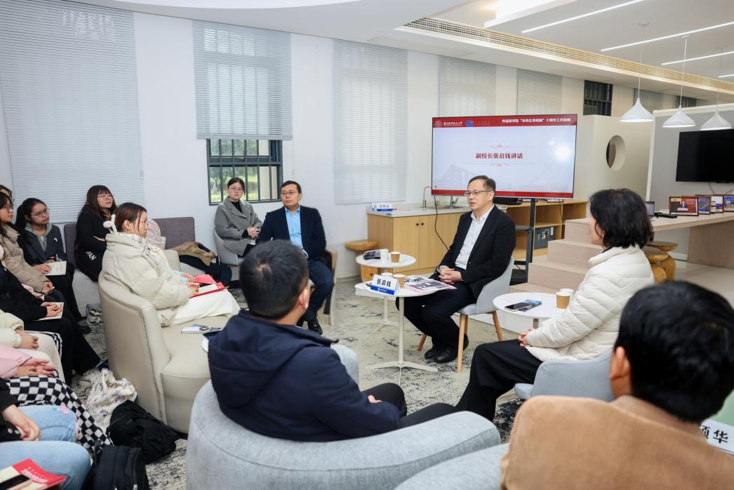活动的最后,张启钱与在座师生亲切交谈。他充分肯定了美高梅4688集团am本科生导师制十年来取得的工作成效,并鼓励青年教师们树立“乐教爱生”的职业观念,以教育家精神倡导的六个内涵为目标,在课堂内外积极开展育人实践。他希望学院本科生联合党支部的党员同志们要发挥战斗堡垒作用,传承优良学风、凝聚支部力量,推动学院整体高质量发展。同时,他鼓励同学们通过模联活动、出国访学、继续深造等多种形式,积极开拓国际视野。在培育国际视野的过程中,更要以家国情怀为基石;在拥抱世界多元文化的同时,不忘根植于心的民族情感,努力成为有家国情怀、有全球视野、有专业本领的新时代外语人才。