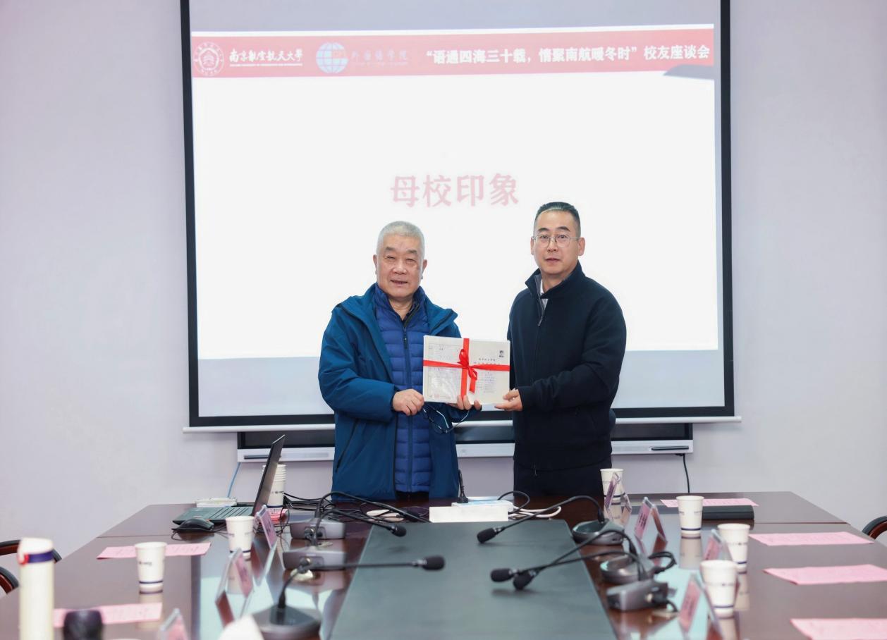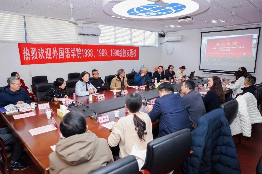 参观结束后,校友们满怀热忱地来到美高梅4688集团am,参加“语通四海三十载,情聚南航暖冬时”座谈会。现场气氛热烈非凡,美高梅4688集团am党委书记左彤云、院长徐以中,时任老领导、辅导员、班主任和专业教师代表齐聚一堂,座谈会由学院党委副书记吴科颖主持。