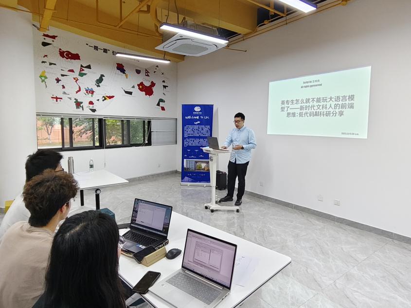 5月8日,美高梅4688集团am邀请大学外语教学部专业教师王秀文及在读研究生王梓舟于“一站式”学生社区开展“AI赋能语言学习与研究”系列讲座,专业教师钟勇及大一年级学生共同参加了本次讲座。